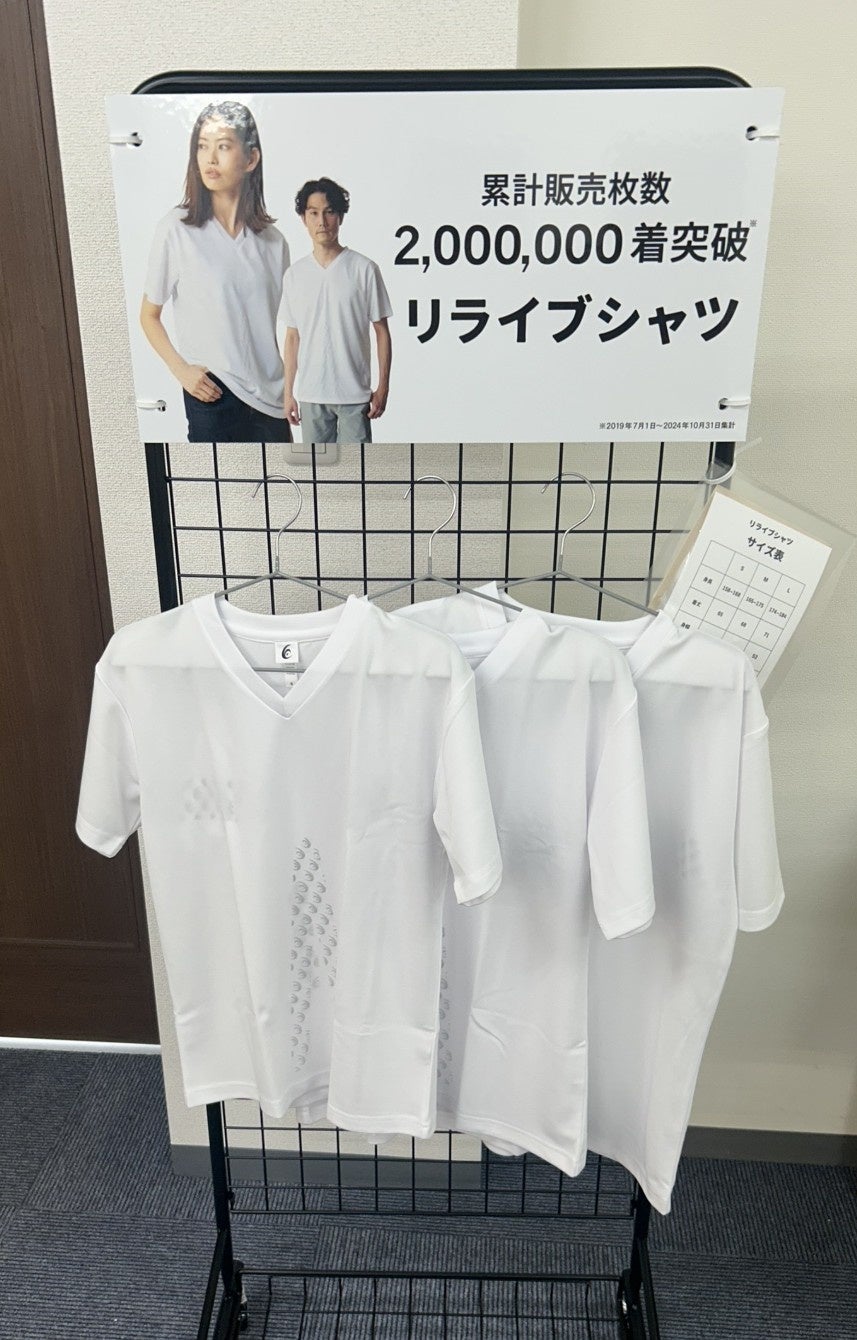 今回の展開では、日中の活動時間や就寝時を問わず着用いただけるTシャツを販売いたします。リライブウェアには、トルマリンなどの鉱石が練りこまれたインクがシャツの前面と背面にプリント加工されていて、着用するだけで血行を促進するというものです。2017年の発売以来、リライブウェアシリーズは累計販売枚数230万着以上※2を販売し、高齢者をはじめ、肉体労働に従事する方、介護従事者、アスリートなど多くの方にご愛用いただいております。機能性ウェアを着用することで血行が促進され、体が楽になるのを実感していただいたり、日々のコンディション維持にもお役立ていただけると考えております。宮城県の企業として、今後もより多くの県民の皆様に手に取っていただけるよう、様々な取り組みや商品展開を通じて、健康維持のサポートに努めてまいります。