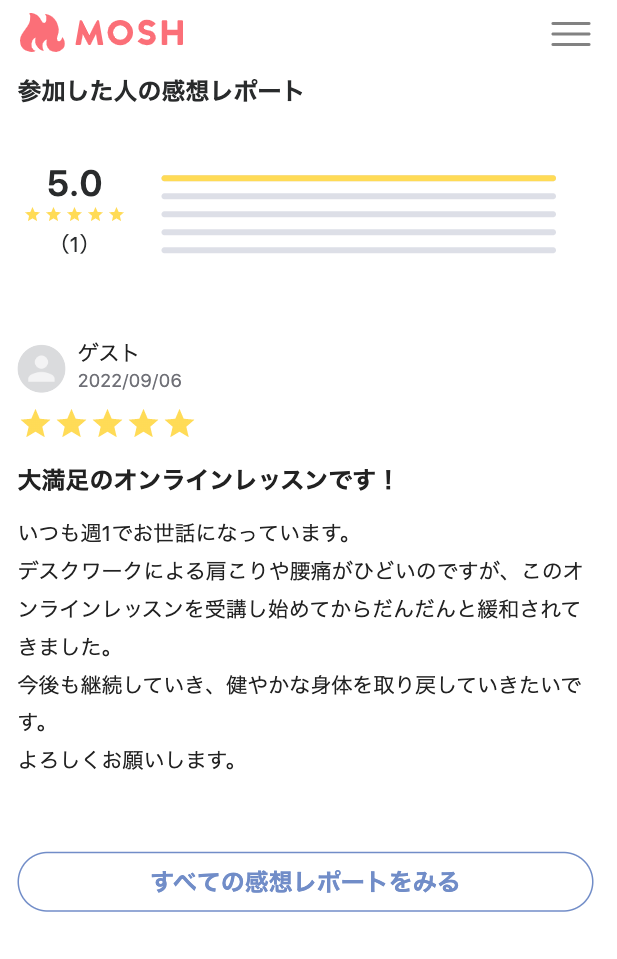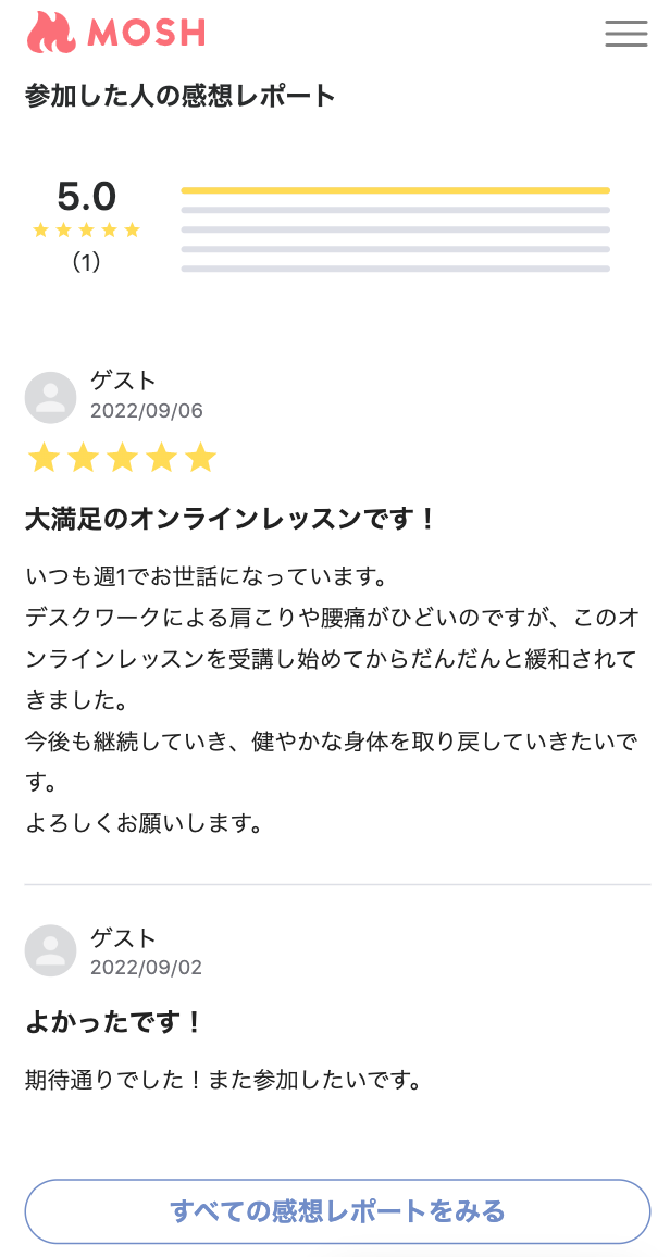 ネットでサービスが売れるMOSH、サービスのレビュー機能「感想レポート」をリニューアル。集客に重要な「ゲストの口コミ」をより見やすく。
