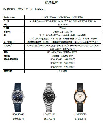 あらゆる場面を想定し作られたスタイリッシュなタイムピースには、ステンレススチール製ブレスレットまたはパンチング加工を施したレーシングスタイルのレザーストラップが組み合わせられ、コレクションのダイナミックなエッセンスを表現します。10気圧(100m)防水とねじ込み式リューズを備える「ジャズマスター」は、人生のあらゆる冒険に最適なパートナーです。