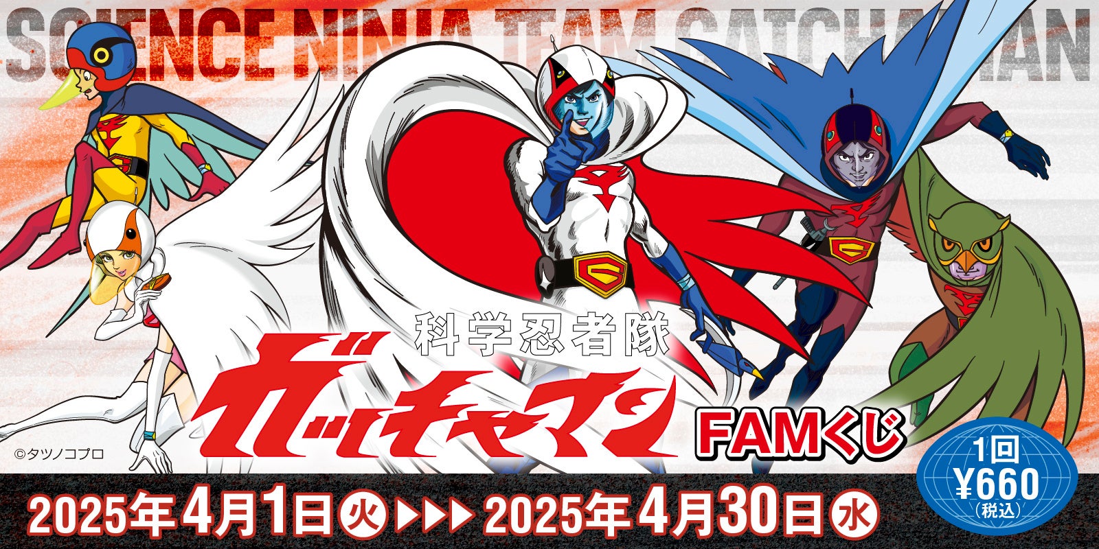 タツノコプロの名作アニメ『科学忍者隊ガッチャマン』がFAMくじオンラインに登場!