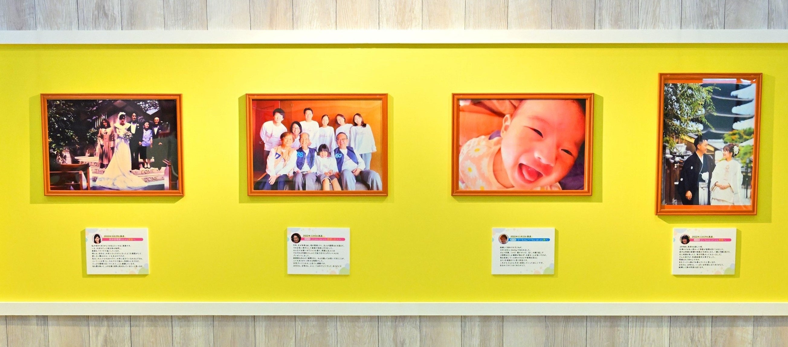 今回の写真展では、これまで番組内で紹介してきた視聴者の皆さんから寄せられた合計38枚の写真とともにありがとうの思いが込められたメッセージを展示し、心あたたまる写真と写真にまつわるエピソードを見に多くの方々が来場されました。スタジオアリスは写真を通じてご家族の思い出を鮮やかに未来へ残していただけるよう、「写真は未来の宝もの」というメッセージのもと、今後もお子さまとご家族の笑顔、ご家族のかけがえのない瞬間を提供してまいります。
