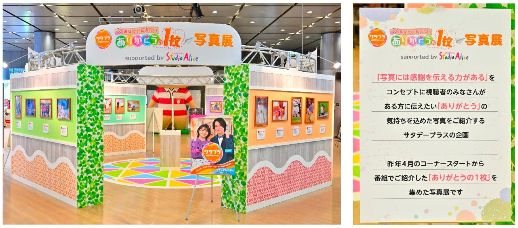 株式会社スタジオアリス(本社:大阪府大阪市、代表取締役社長:牧野俊介)が提供する毎日放送「サタデープラス」(毎週土曜日 午前7時59分~9時25分 / TBS系列28局ネット)の人気コーナー「あなたが伝えたい ありがとうの1枚」にて、1月6日(金)から31日(火)までの26日間『「あなたが伝えたい ありがとうの1枚」写真展 supported by スタジオアリス』を開催いたしました。