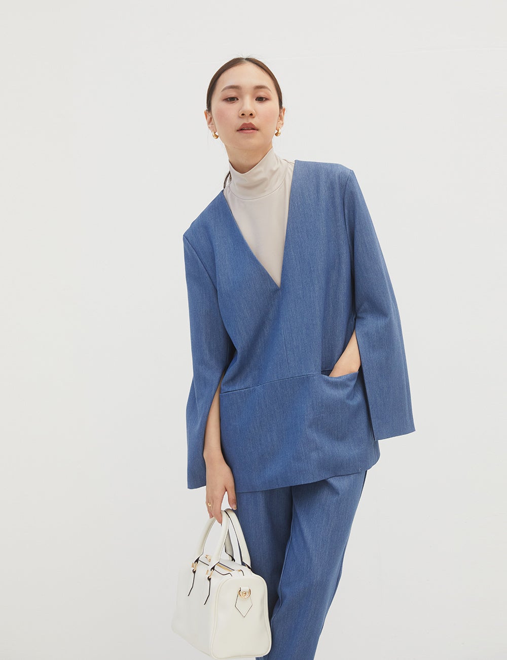 厚手すぎず、透けにくい扱いのしやすい素材で、着心地も良いファブリック。立体感のあるシルエットは着るだけで存在感を放ちます。