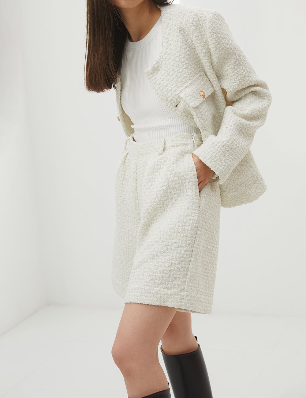 ジャケットとセットアップにもなるツイードのバミューダパンツ。