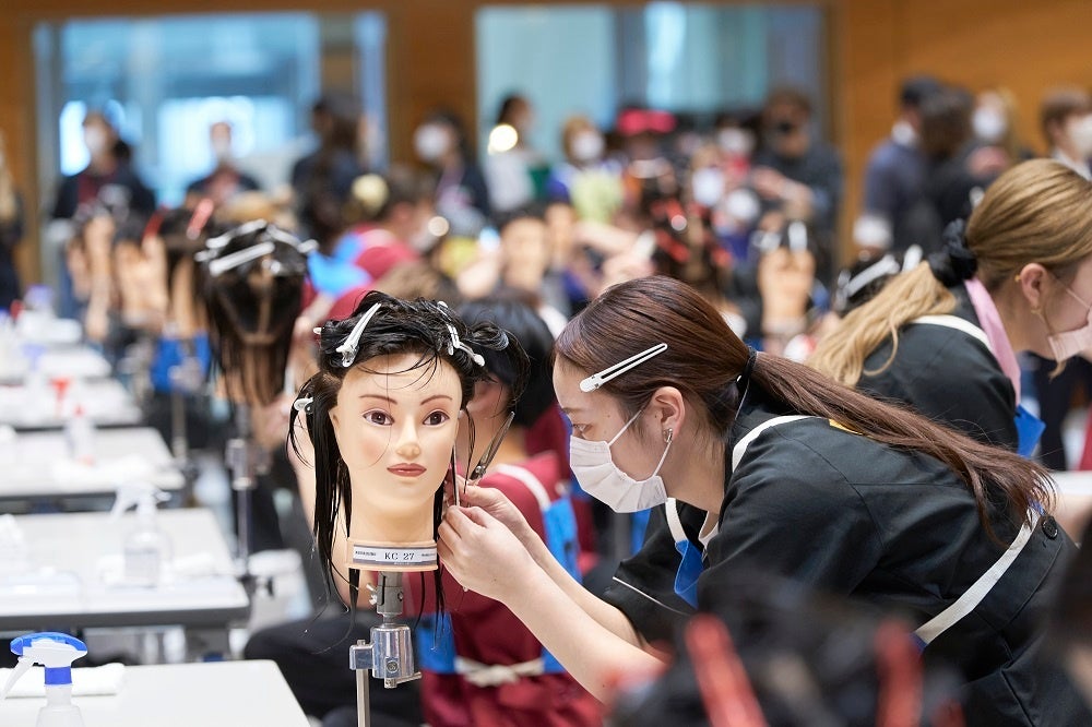 競技種目も多く、ヘアスタイル以外にも、メイク、アイラッシュ、フェイシャルなど、美容のあらゆる分野をカバーしたプログラムが組まれています。