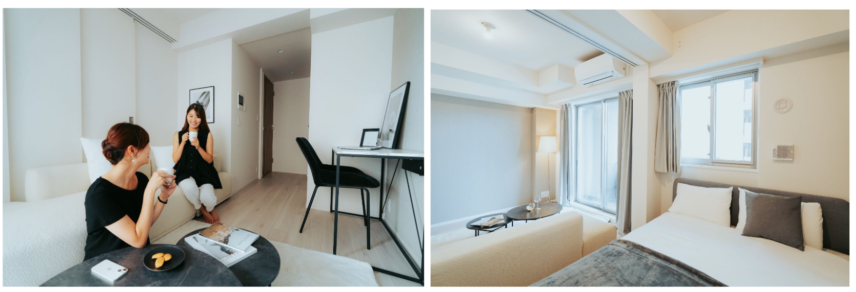 入居者が外泊する際は、自己所有物を鍵付き収納に保管後、運営スタッフが清掃を行った上で部屋の貸し出しを実施するため、宿泊者は通常のホテル同様に宿泊ができます。