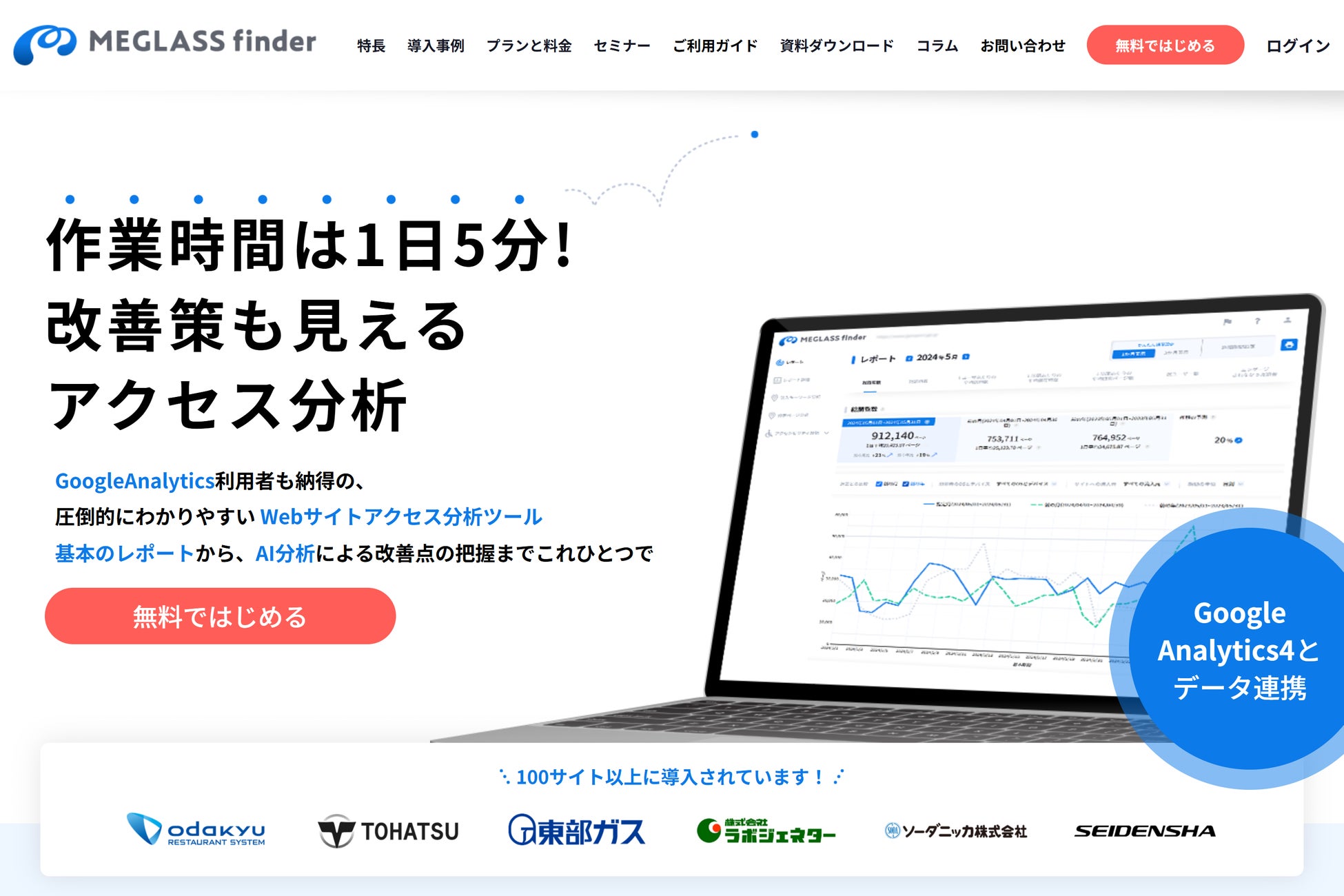 ■すぐ見える、すぐ出せる。日々のアクセスからキーワード毎の検索順位まで、1日5分でわかる最速アクセス分析「MEGLASS finder」とは