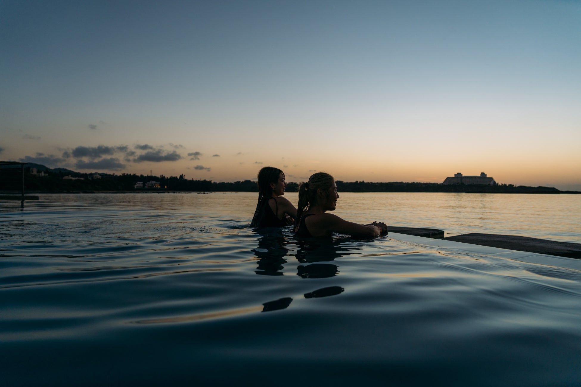 海水を循環させているラグーンで海と一体化したような気分を味わえます。インフィニティな眺め、また海水だからこその浮遊感は格別です。サウナ初心者でも身体に負担なくお楽しみいただける水温で安らいでいただきます。