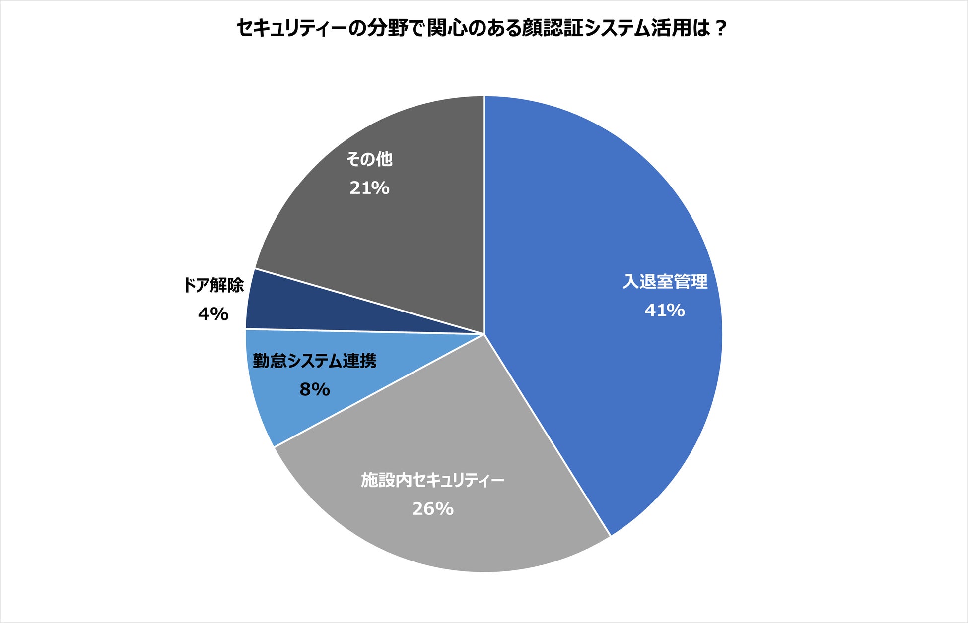 結果、171社中118社でセキュリティーへの顔認証活用に対する関心が高いという回答になり、中でも「入退室管理」「施設内セキュリティー」に関心が高い企業が多いことが分かりました。