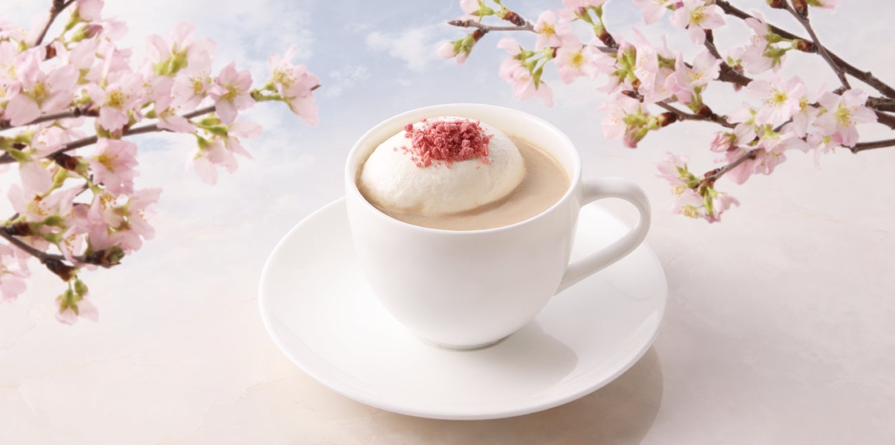 ダブルネルドリップコーヒーと日本紅茶の新たな出会い 上島珈琲店から新メニュー『珈琲香るミルク紅茶』、華やかな春の色を楽しめる『関山桜のミルク珈琲』、『苺ミルク』を2月27日に期間限定発売!