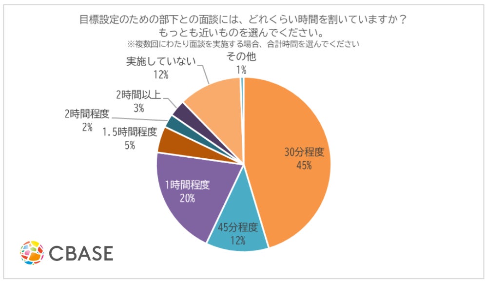 設問:目標設定のための部下との面談には、どれくらい時間を割いていますか?もっとも近いものを選んでください。