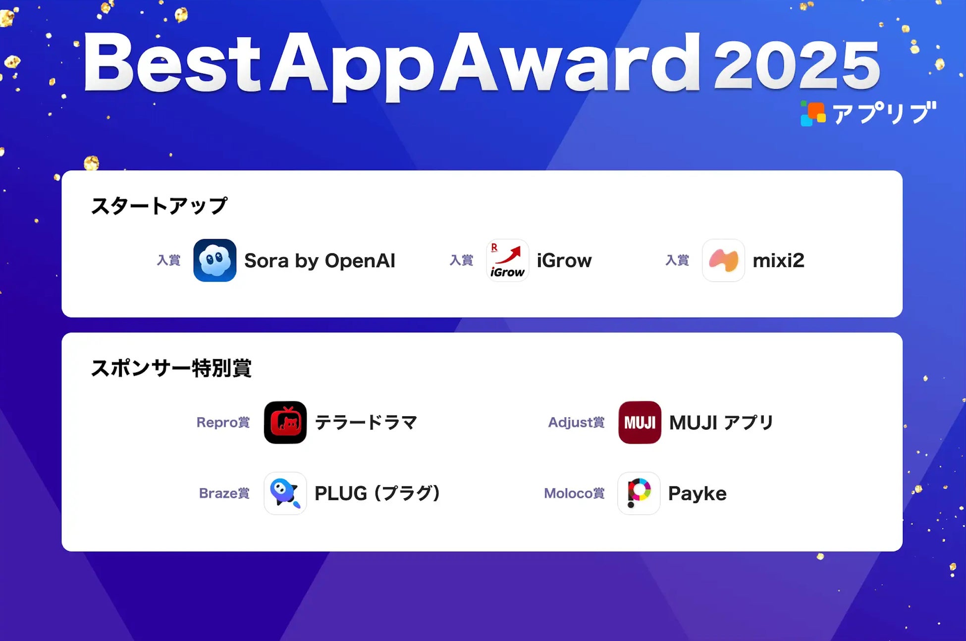 「アプリブ Best App Award 2025」は、その年に最もユーザーへ届けたい優秀なアプリを称え表彰しするアワードです。