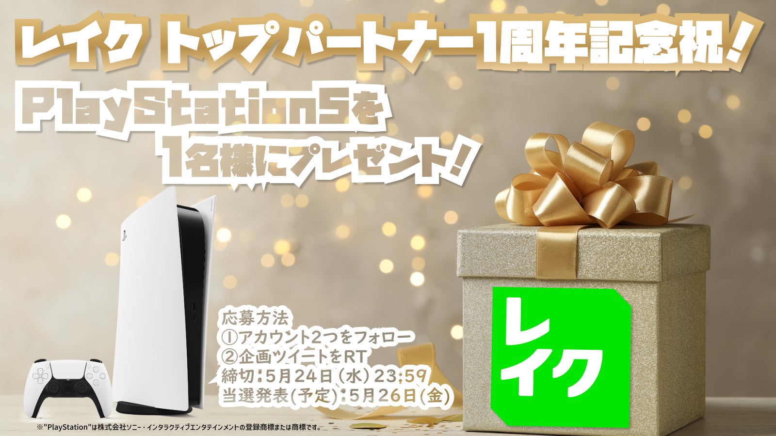 「レイク」、プロゲーミングチーム「SBI e-Sports」トップパートナー1周年記念PlayStation 5が抽選で1名に当たるTwitterキャンペーンを実施