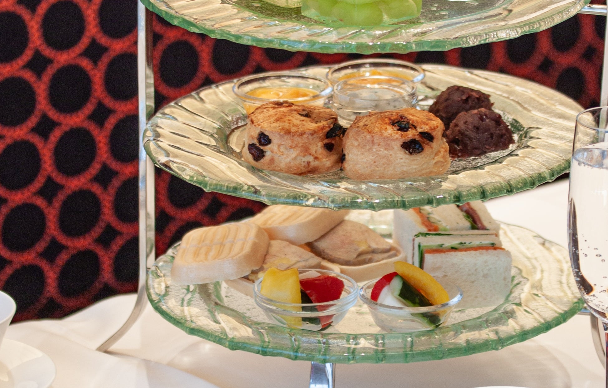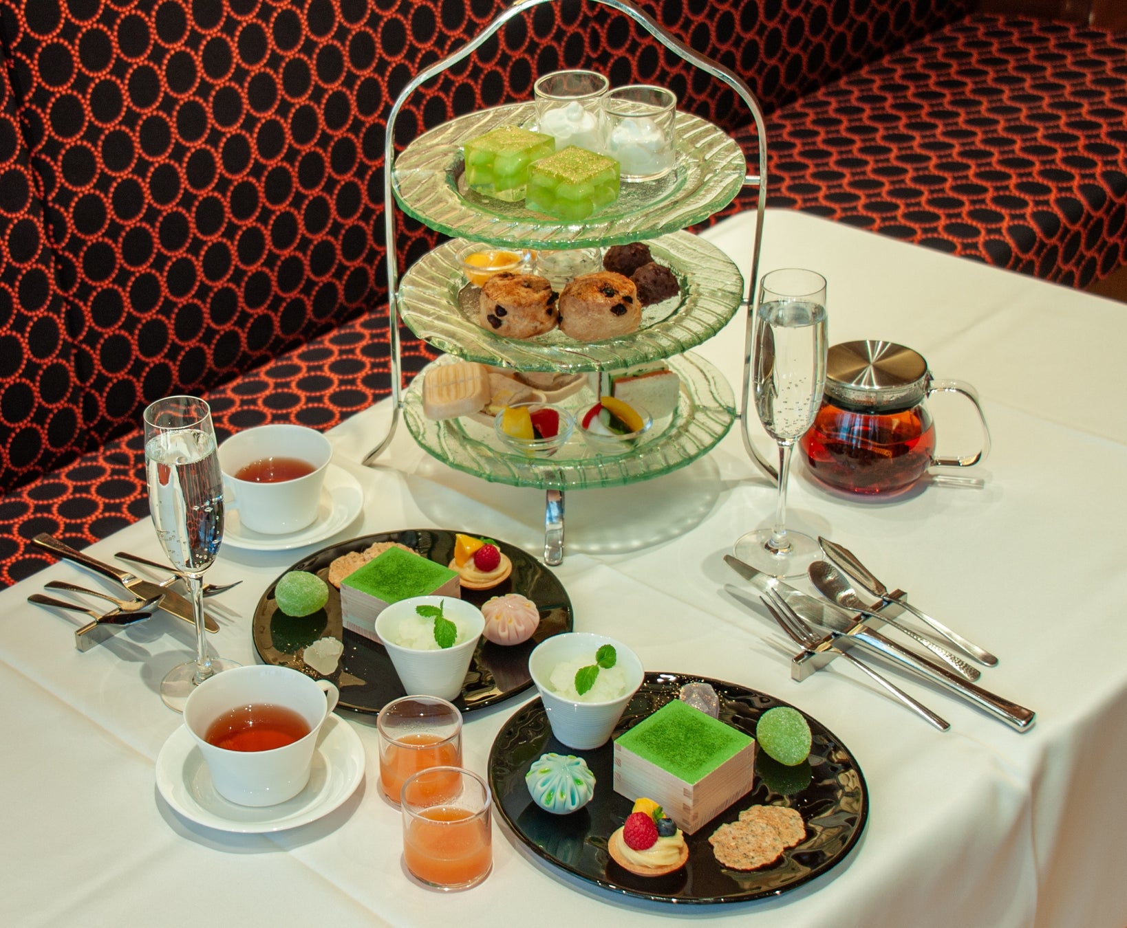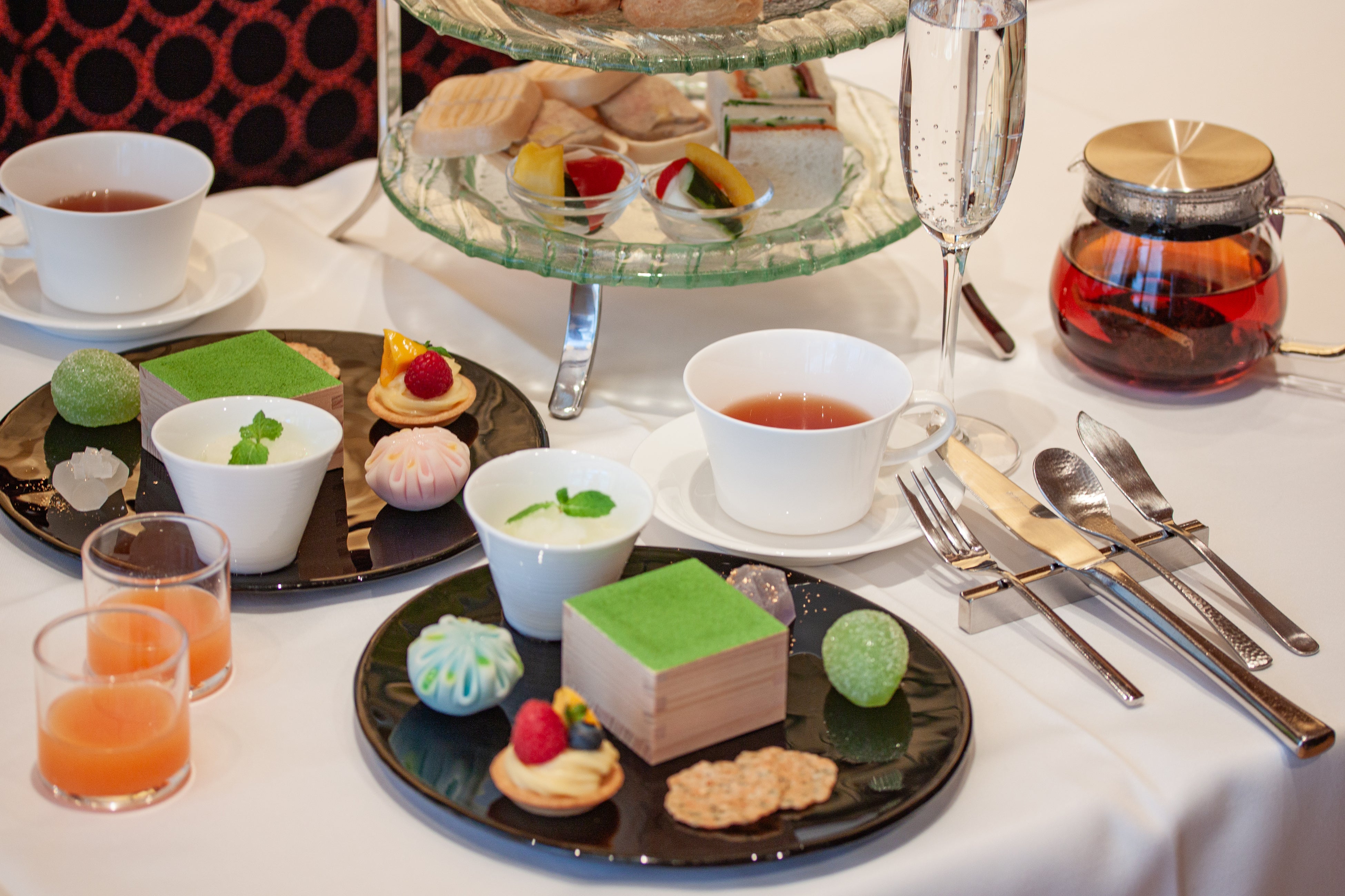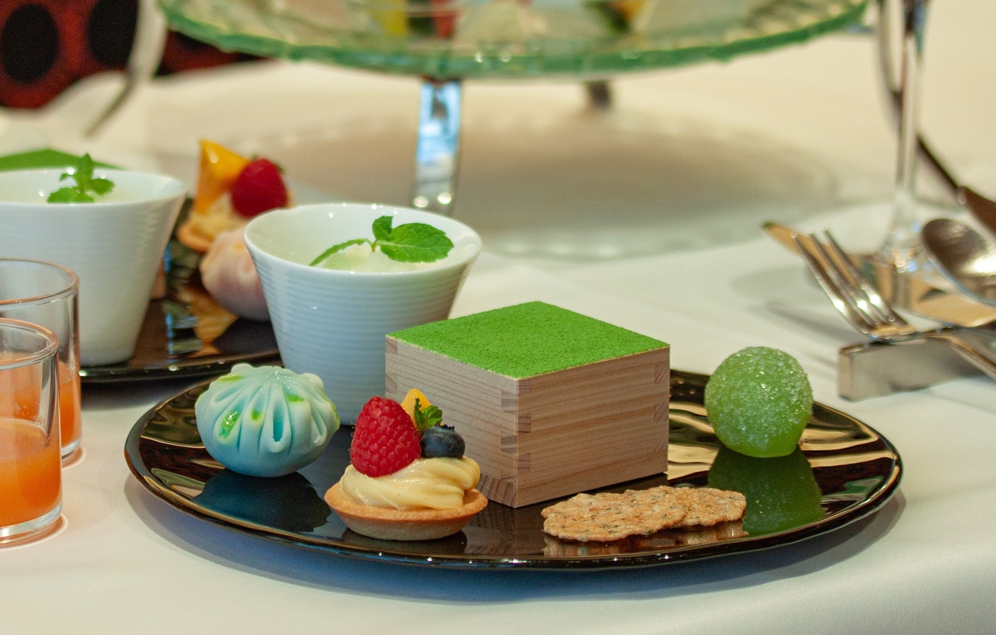 心ときめくスイーツが並ぶ、優雅なティータイム。一皿ごとに旬の果実を贅沢にあしらい、見た目にも華やかに仕立てました。カフェの人気メニューや今イベント限定スイーツ、宗家 源 吉兆庵の和菓子もご堪能いただけます。自家製オリジナル和スイーツを存分にお楽しみください。