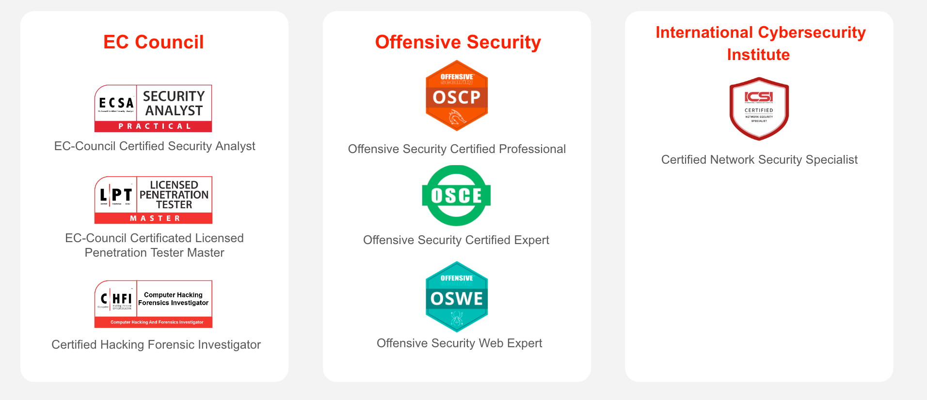 Sun*が提供する脆弱性診断サービスは、OSCP、OSCE、OSWEなど世界最高峰の難度のセキュリティ資格を取得している技術チームが、業界標準の脆弱性項目をカバーする最新の診断項目「OWASPテスティングチェックリスト」による診断を行います。