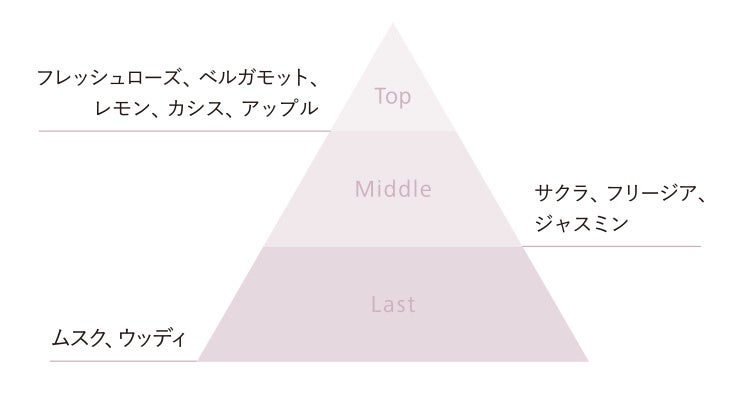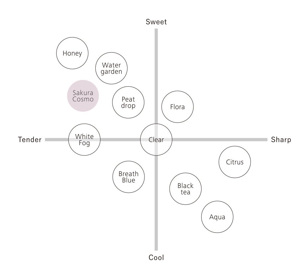 五分咲きの桜をイメージしたどこか儚く清らかな香りは、早春の冷たい空気のように澄んだ気持ちを呼び覚まします。
