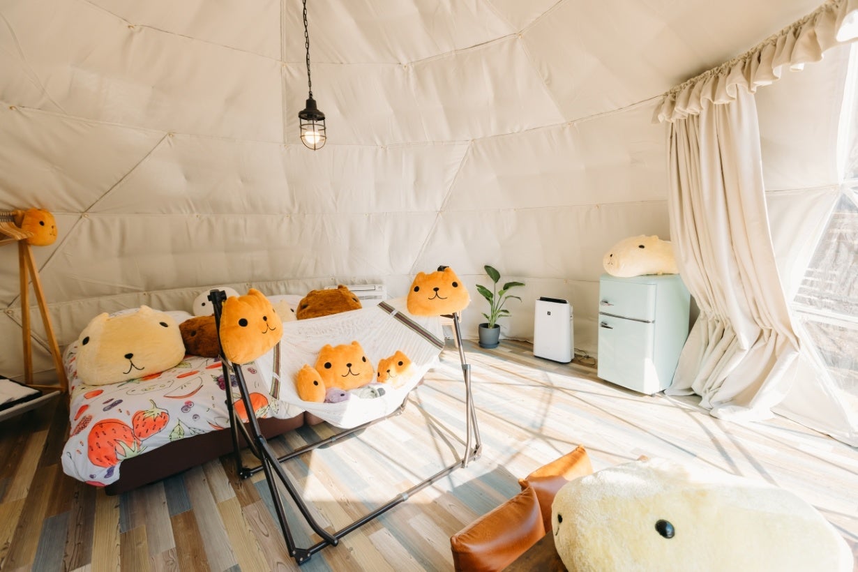 今回登場したのは、プチホテルで大人気の「ダイナソールーム」、「カピバラさんコラボルーム」、伊豆シャボテン動物公園とコラボした「アニマルルーム」等のテントルームです。ドキドキわくわくが詰まった新感覚グランピングに宿泊してみませんか。
