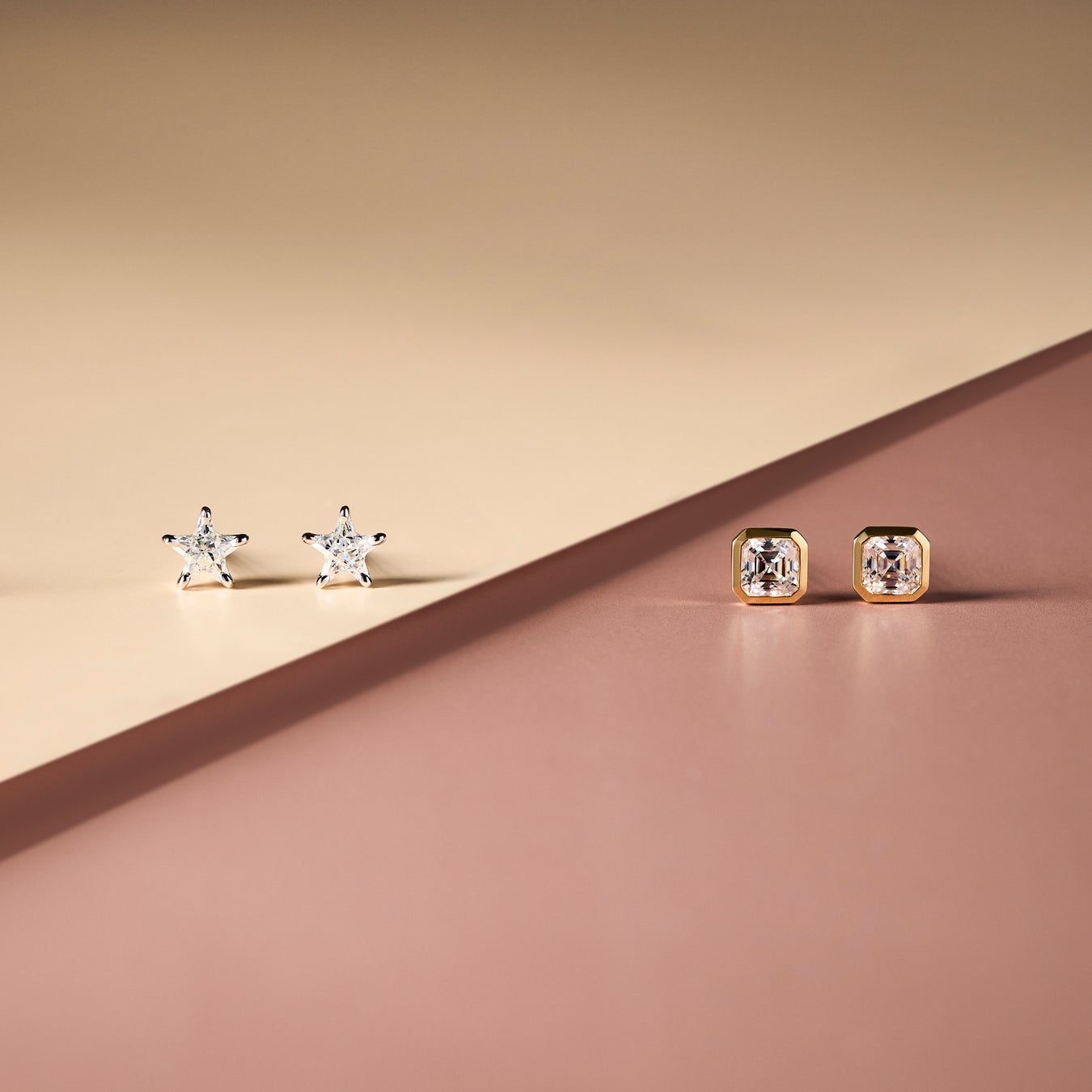 また、アッシャーカットのシンプルな覆輪ピアスが登場。透明感と8角形のコロンとした形が魅力のこのカットは、どのようなテイストにも馴染みやすく、セカンドホールピアスとしてもおすすめです。