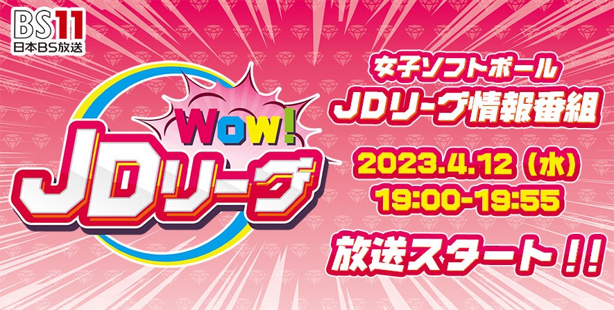 一般社団法人 日本女子ソフトボールリーグ機構(所在地:東京都新宿区霞ヶ丘町4-2 10階、代表理事:三宅 豊、島田 利正)は、4月12日(水)より日本BS放送株式会社が運営する放送チャンネル・BS11で、JDリーグ情報番組『Wow! JDリーグ』の放送を開始いたしますことを下記のとおりお知らせいたします。