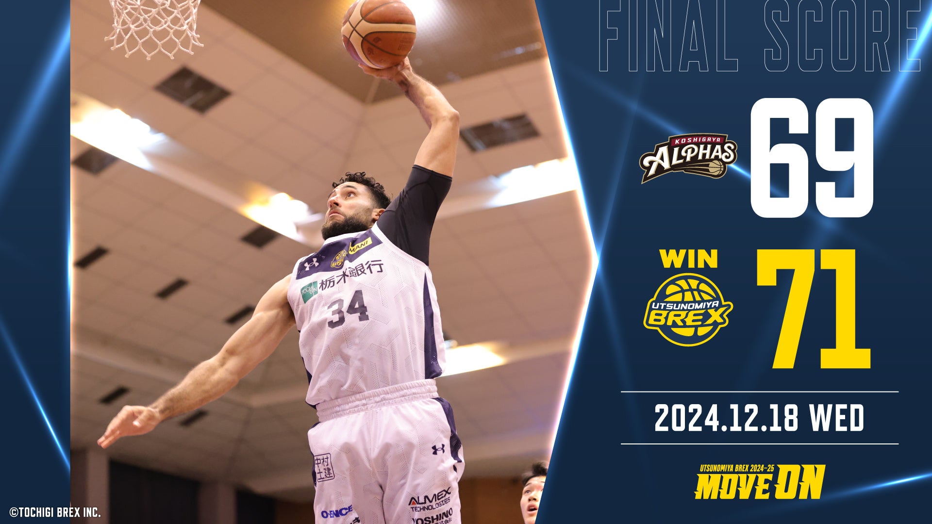 宇都宮ブレックスは、2024年12月18日(水)に越谷市立総合体育館で同地区の越谷アルファーズと対戦しました。