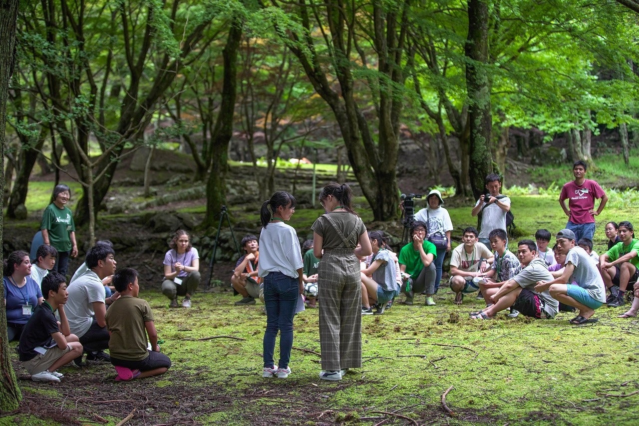 キャンプ内容:滑床渓谷ウォーク、外国人スタッフによる母国紹介、野外炊事、キャンプファイヤーなど