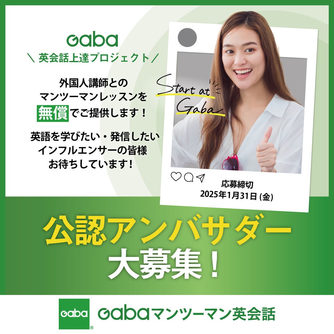 株式会社GABA(ガバ)(本社:東京都品川区、取締役社長:隈井 恭子)は、2025年1月より、英会話サービス「Gabaマンツーマン英会話」の魅力を発信いただける公認アンバサダーを募集いたします。