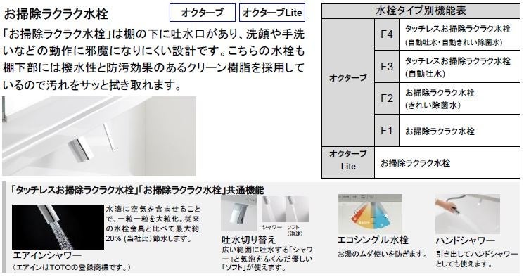 *「お掃除ラクラク水栓」はオクターブ・オクターブLiteに品揃えします。
