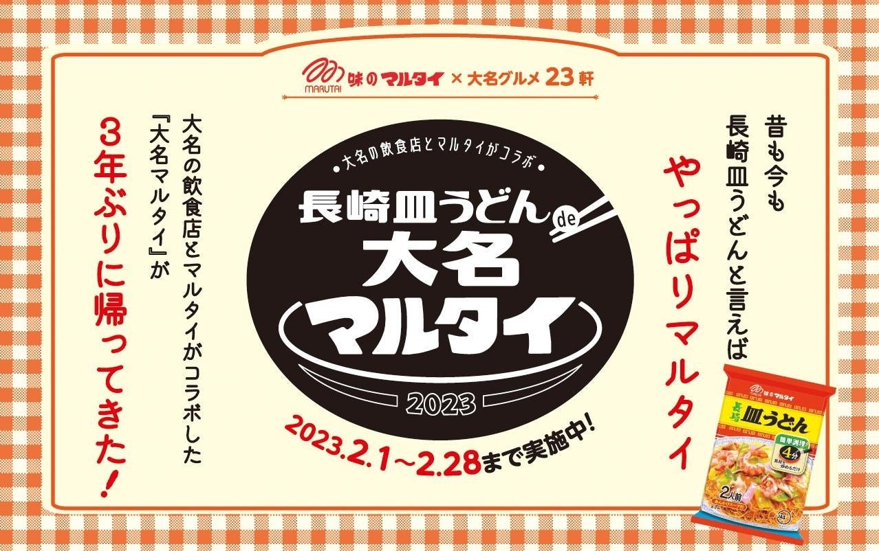 2020年も大好評だったあの企画が3年ぶりに帰ってきました!4回目となる今回も「昔も今も皿うどんと言えば…マルタイ!」と不動の人気を確立する『長崎皿うどん』とのコラボ料理が登場!大名の料理人たちの手にかかったオリジナリティ溢れる“あっ”と驚く逸品料理に変身!今すぐ大名へGO!