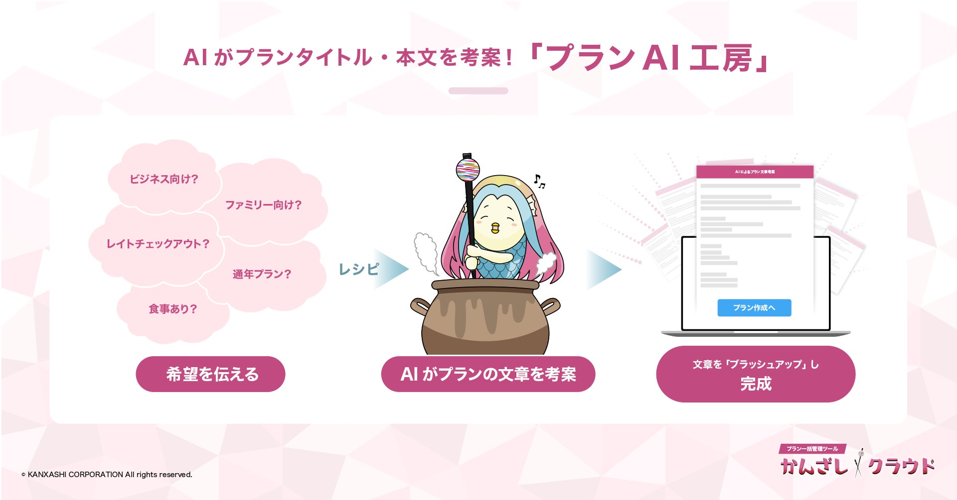 株式会社かんざし、宿泊業界向けプラン一括管理ツール「かんざしクラウド」に新機能「プランAI工房」を提供開始