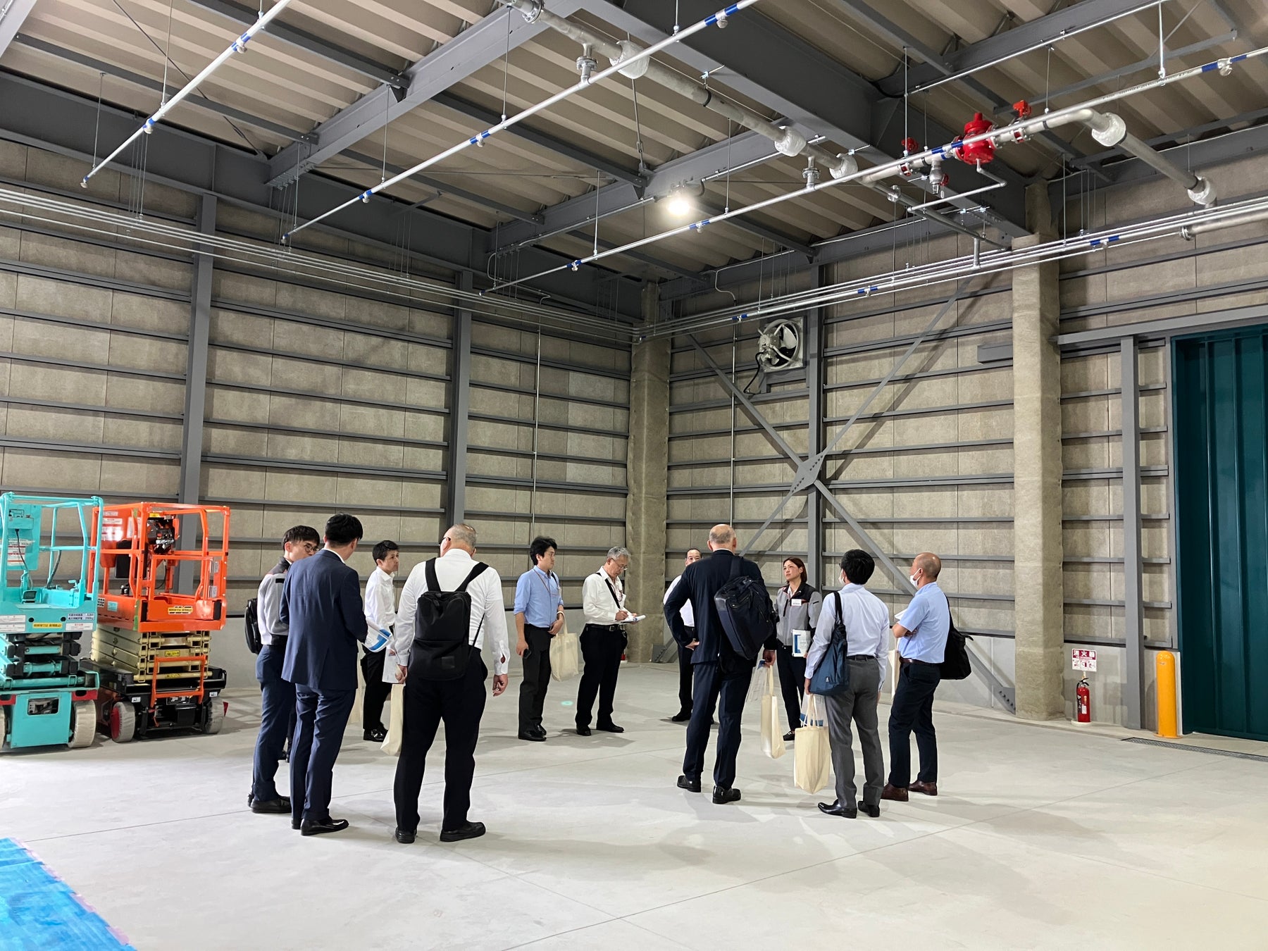 この度、完成した藤原運輸株式会社の大正ケミカルセンターにおいて、同業他社向けの見学会を開催しました。当日は午前・午後の2部制で26社103名が参加し、倉庫の仕様や設計プロセスなど、通常は公開しない内容についても詳しく説明を行いました。参加者の96%が「大変良かった」「良かった」と回答。具体的には、「4棟とも隅々まで見せてくださり参考になった」「質問に明確に答えていただいた」など今後の倉庫建設を見据えて参加者の知見が深まる機会になったようです。