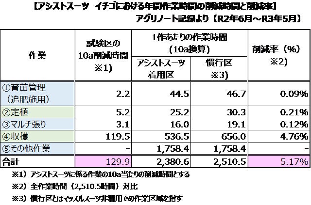 株式会社イノフィス(東京都新宿区、代表:折原 大吾、以下「イノフィス」)は、このたび農林水産省スマート農業実証プロジェクト「新しい時代を切り開く直売型スマートイチゴ生産・経営モデル実証コンソーシアム」(以下「本コンソーシアム」)の実証実験に参加し、マッスルスーツ導入による時間削減効果と労働費削減効果を実証しました。