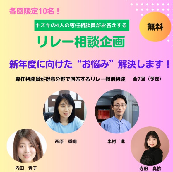 そこで、キズキでは、新年度に向けた不安やお悩みにお答えする「個別相談企画」を行うことにいたしました。