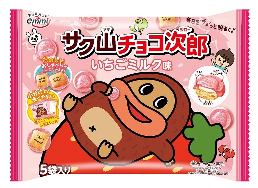 大好評につき通年販売が決定!笑顔になれるチョコビスケット『サク山チョコ次郎』から「5パック いちごミルク味」が定番ラインナップに仲間入り!