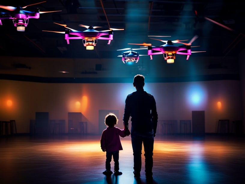小型無人機であるドローンは産業用だけでなく娯楽用でも活躍しています。技術の進歩により屋内でも可能になったドローンショーをお届けします。わずか188gの機体にLEDライトを搭載した複数のドローン(※)が目の前で飛び回る感動の空中ショーをご覧いただけます。