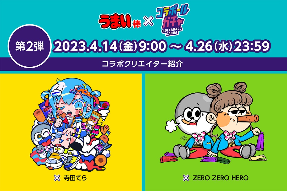 ポップなイラストで注目のクリエイター「寺田てら」と「ZERO ZERO HERO」を起用!両クリエイターとのコラボ商品が当たる『うまい棒×コラボ―ルガチャ第2弾』が4月14日よりスタート