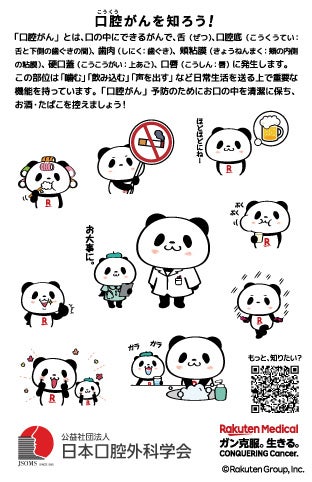 11月は、口腔に関連する啓発日として、8日の「いい歯の日」と15日の「口腔がんの日」が制定されています。本活動を通じて、一人でも多くの方に口腔がんについて知っていただき、同疾患に対する予防や早期発見に繋がるよう、日本口腔外科学会と楽天メディカルは、楽天の公式キャラクター「お買いものパンダ」を用いた口腔がん啓発シール(以下、啓発シール)を全国の医療機関等で順次配布します。