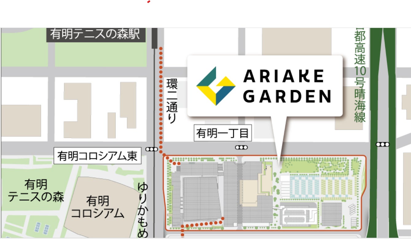 「有明ガーデン」は東京湾岸エリア最大級の商業施設であり、東京湾岸エリア最大店舗数を誇る200店超のショッピングモールをはじめ、国内最大約8,000人収容の劇場型ホールや、劇団四季専用劇場、大規模な温浴施設を備えたハイグレードホテル、総戸数1,500戸超のトリプルタワーマンションなどで構成されます。