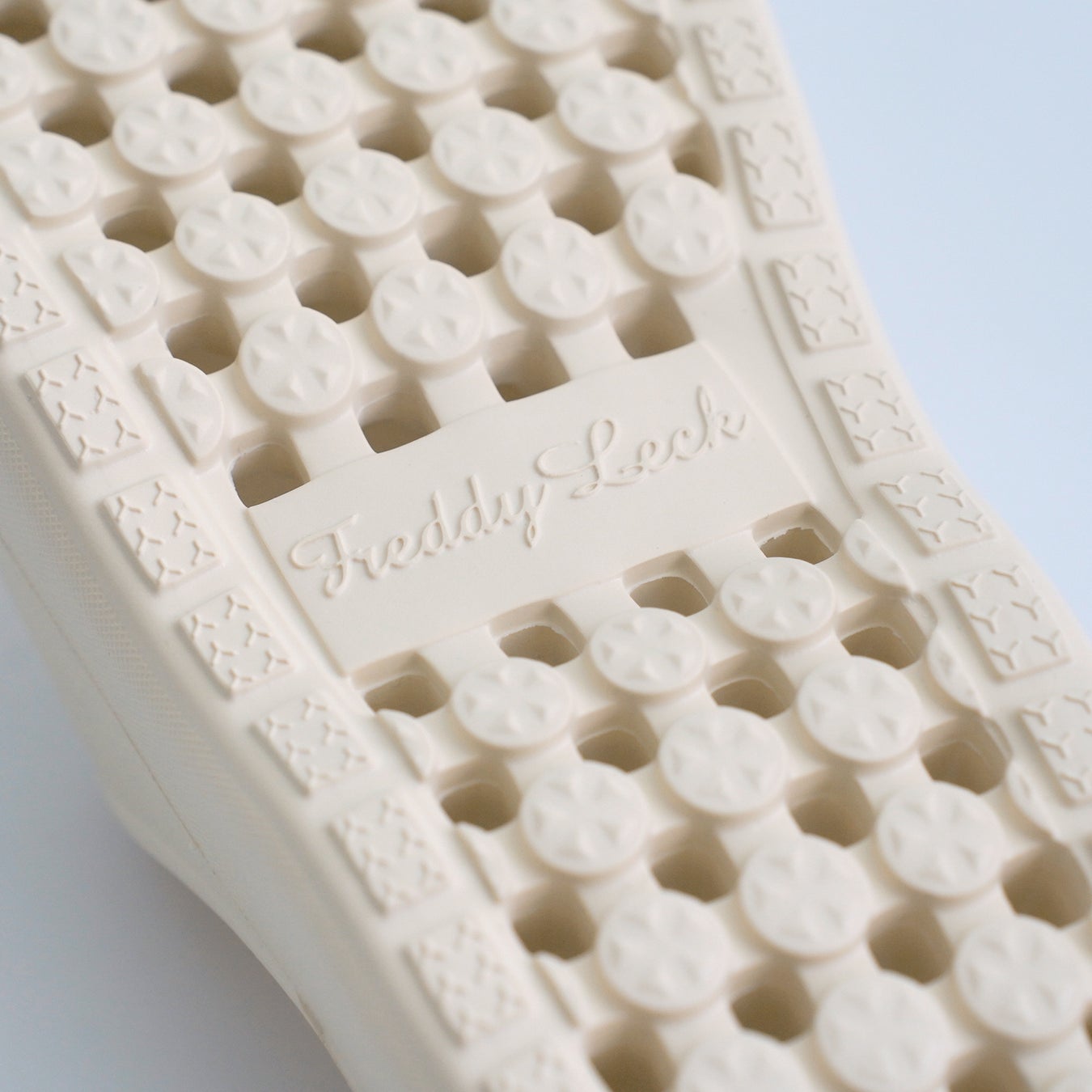 水はけ機能に影響しない土踏まず部分に、フレディ レックのロゴをあしらいました。