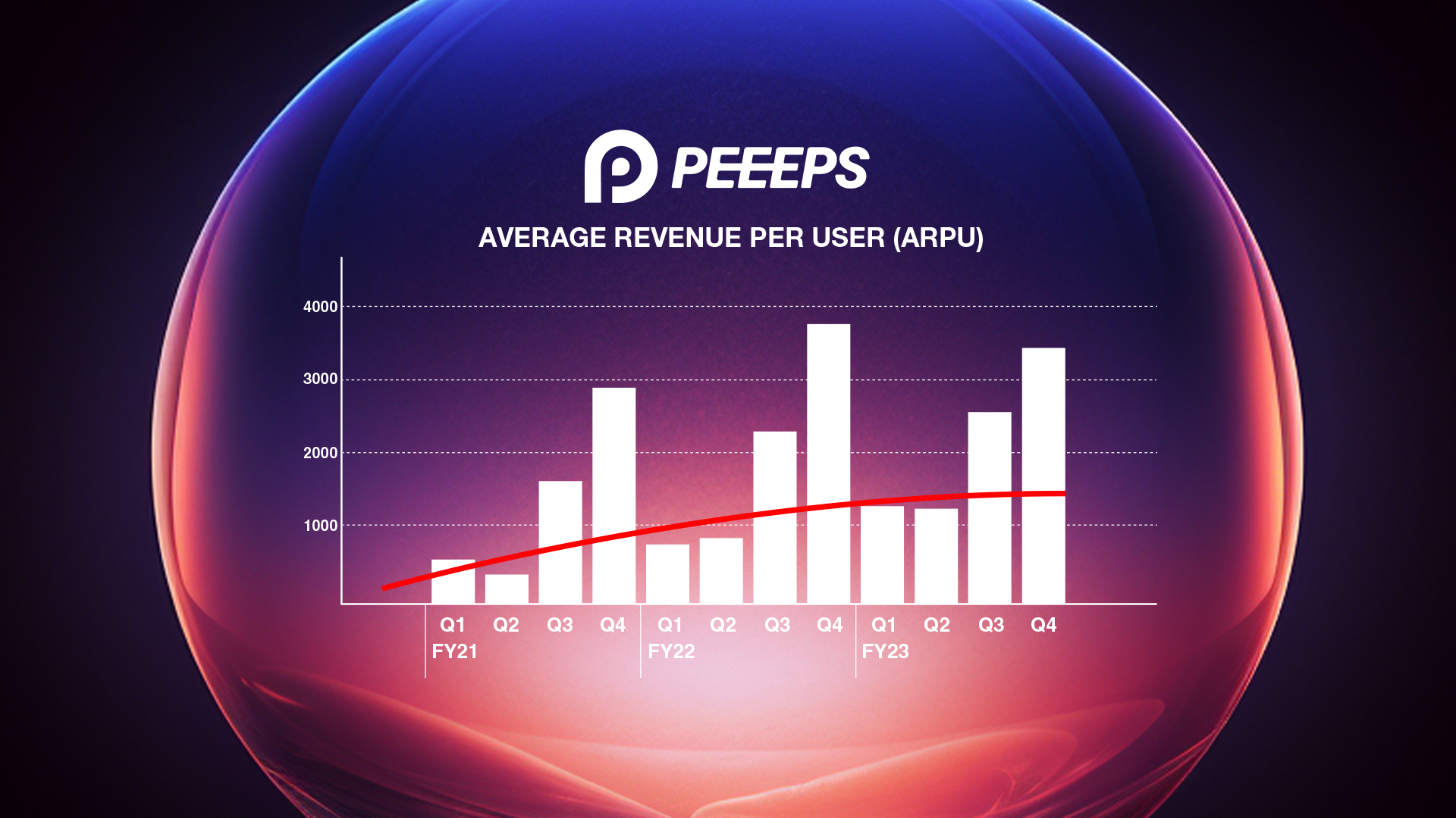 β版としてこれまで公開してきた「PEEEPS」は、2023年12月末までに有料会員数は約25,000人を突破、サブスクリプション有料会員の平均ARPUは2,256円となり、FY23-4Q時点では、3,454円まで上昇し、定額のサブスクリプション収益におけるARR※1は3億円に達しております。