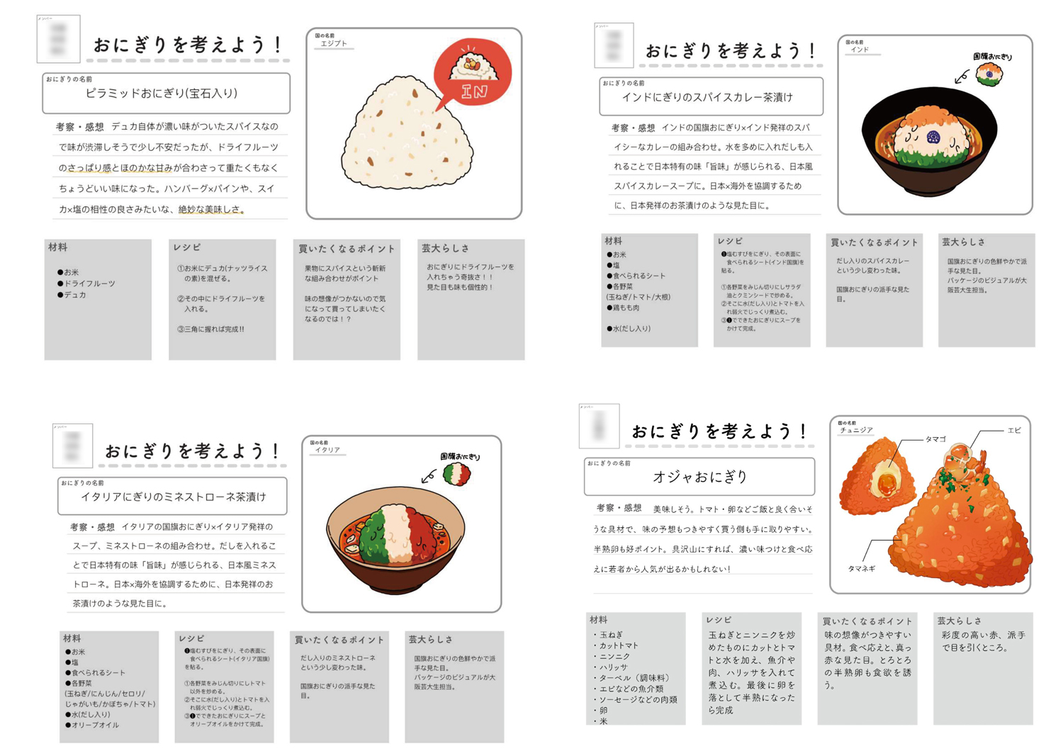 2022年はより具体的に「世界のおにぎり」を実際に販売することを目標に、アドバイスをいただきながら共同開発を進めていきました。1年以上の間、外国料理店のリサーチとアイディアワークショップ、そして試作を何度も繰り返し、今回の販売できるものに仕上げました。万博をきっかけに世界の食文化を広め、大人から子供までの多世代に対して食を通した創造的な「学び」の実践を行い、新しい「学び」の循環を作り出す取り組みを行なってまいります。