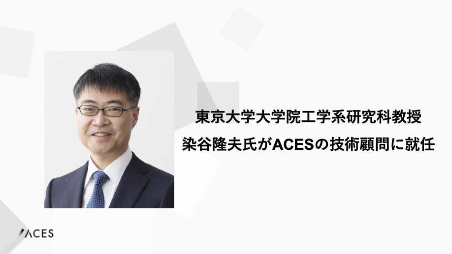 この度、東京大学大学院工学系研究科電気系工学専攻教授/工学系研究科・工学部長の染谷隆夫氏が当社の技術顧問に就任いたしました。ACESはかねてより、アカデミアで生み出された先端技術を産業界に繋げることに注力して参りましたが、染谷氏の技術顧問就任を受け、より一層アカデミアと社会の好循環を生み出すべく技術の深化と社会実装に邁進してまいります。