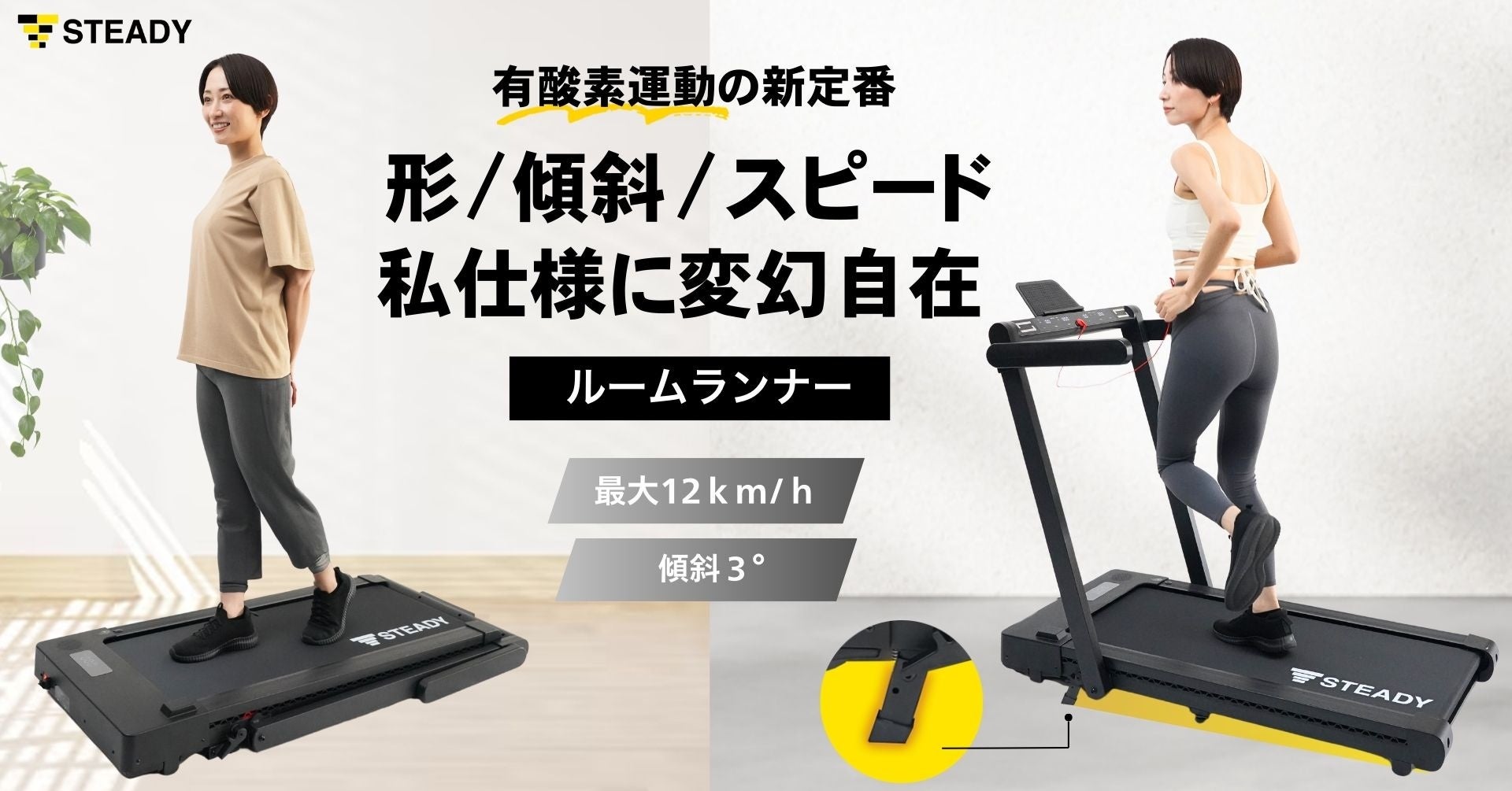 2018年のブランド展開開始から、SNSやカスタマーサポートで既存製品に対するお客様の声を拾い上げ、日本人の体格や考え方、住環境、ライフスタイルに配慮したホームフィットネス / ストレッチ製品を提案し、日本においてトップクラスのEC販売実績を誇る ステディジャパン株式会社(本社:東京都新宿区、代表取締役CEO:森由樹)は、バスタオル1枚分のコンパクトサイズで幅広い有酸素運動ニーズに応える 「STEADY ルームランナー」を2024年10月16日(水)より総合オンラインストアAmazon.co.jpにて先行販売します。
