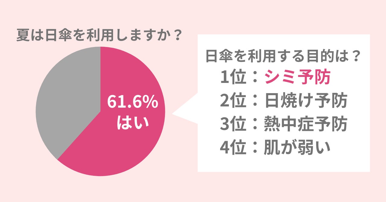 ●61.6%の女性が夏は日傘を利用、シミ予防に効果アリ?