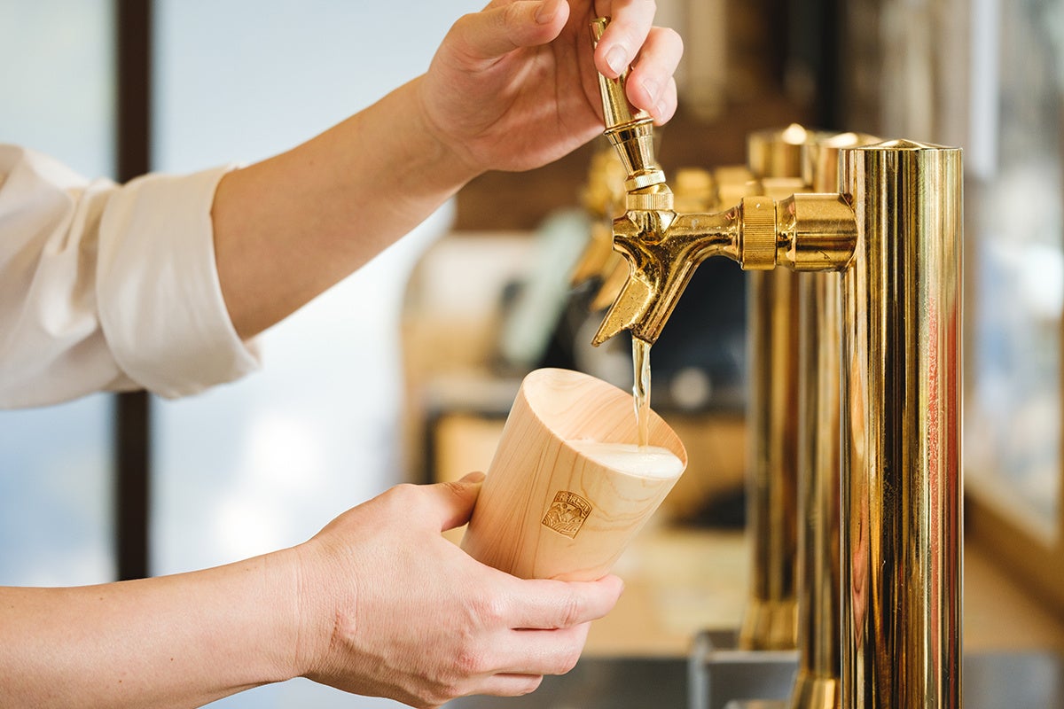 小田原の間伐材を使用し、箱根ビールのロゴを彫り込んだオリジナルタンブラー。