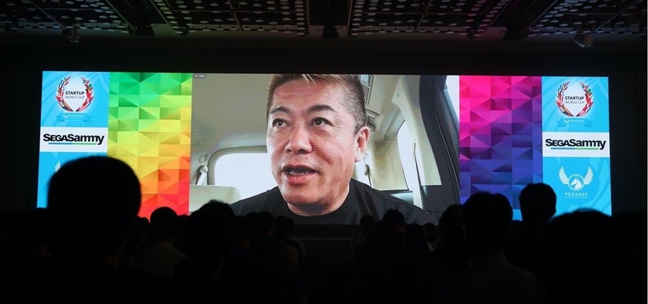 また、SNS media & consulting株式会社ファウンダー 堀江貴文氏は遠方よりライブ中継でスタートアップへのエールをお送りいただきました。