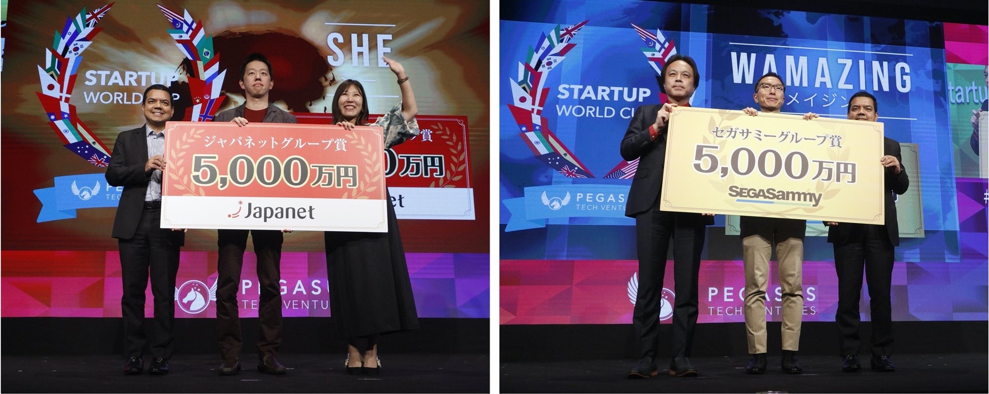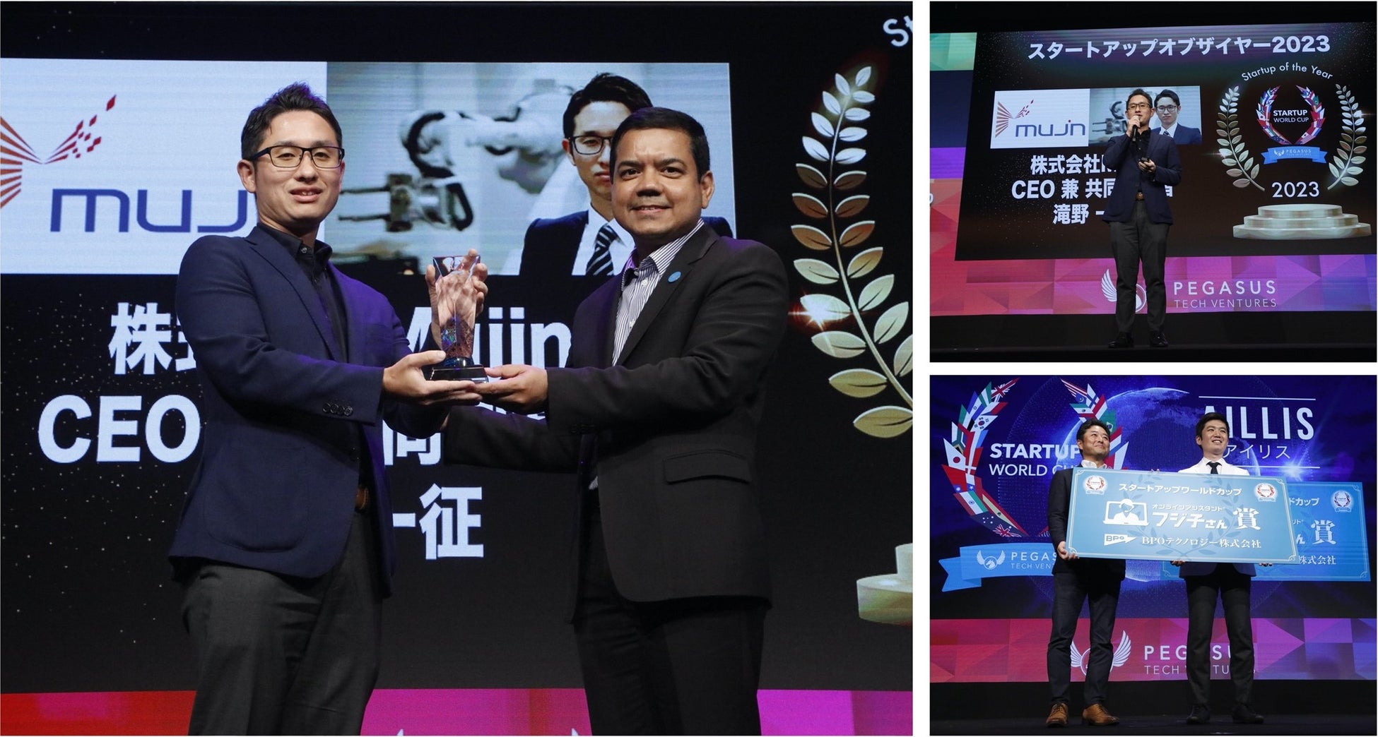 今大会受賞者は2位は人事データの分析ツールを持つパナリット株式会社、3位は女性向けキャリア支援のSHE株式会社が入賞。また特別賞としてペガサス・テック・ベンチャーズからスタートアップオブザイヤー賞を産業用ロボットを開発する株式会社Mujinへ、ジャパネット株式会社からは投資賞金5000万円のジャパネットグループ賞をSHE株式会社に、セガサミーグループからも同じく投資賞金5000万円のセガサミー賞として京都予選で登壇をしたインバウンドプラットフォーム事業を展開するWAmazing株式会社へ、BPOテクノロジー株式会社からはオンラインアシスタントフジ子さん賞としてアイリス株式会社へ贈られました!