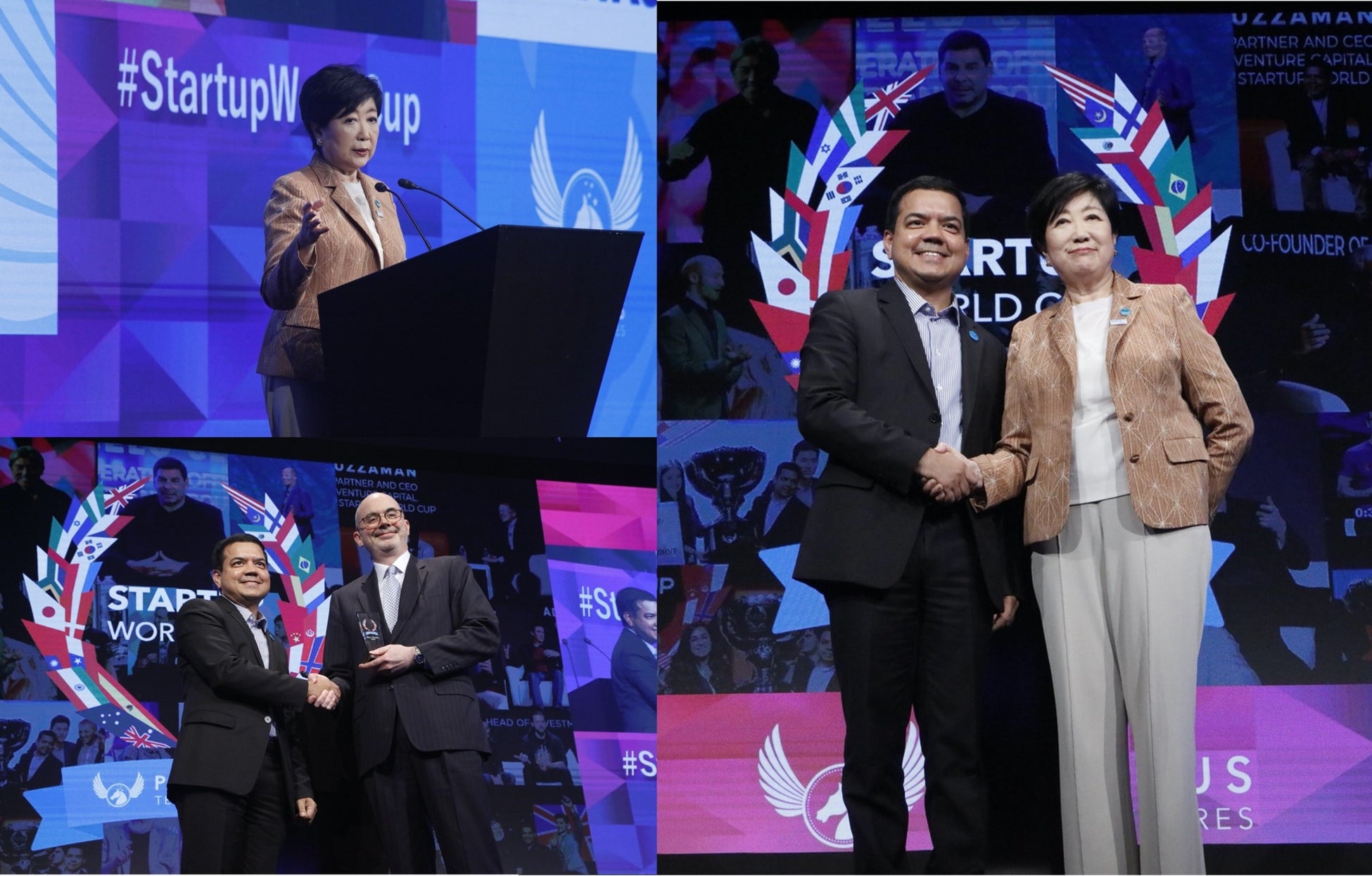 同大会では米国と日本を代表する企業家・投資家・アカデミア・著名人が、今大会の応援をしてくださいまして大いに盛り上げて頂きました。スペシャルゲストスピーカーとして東京都知事・小池百合子氏、在日米国大使館主席公使・レイモンド・F・グリーン氏が来場スピーチ。そしてApple共同創業者 スティーブ・ウォズニアック氏がForbs JAPANファウンダー・高野氏との対談ビデオメッセージで参加していただきました。