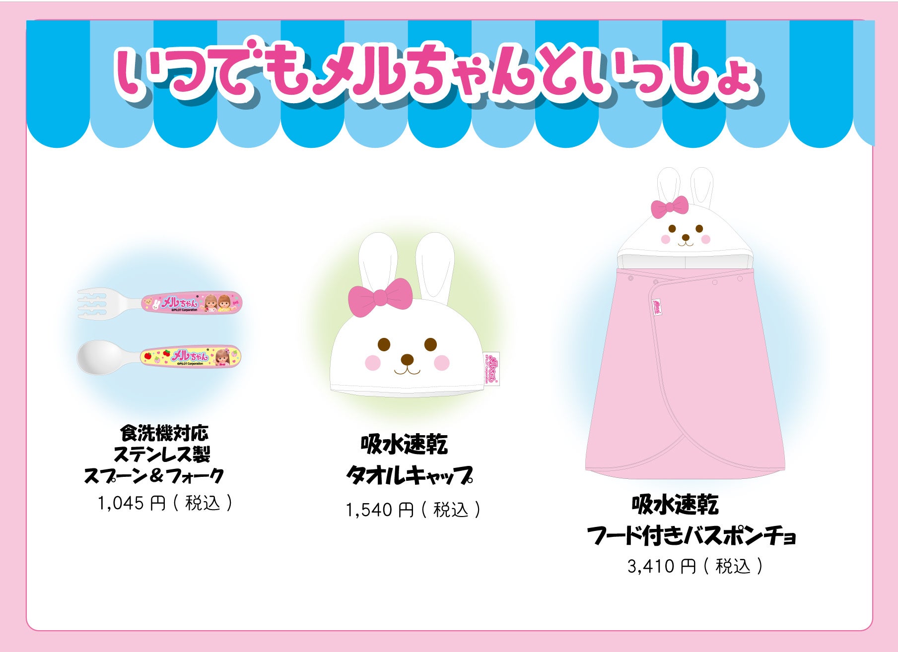 総合ファンシーグッズメーカーのスケーターより、メルちゃんのかわいいスプーン&フォークやバスグッズなど、日常を一緒に楽しめるグッズが順次発売となります。