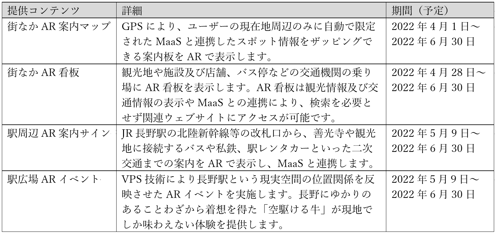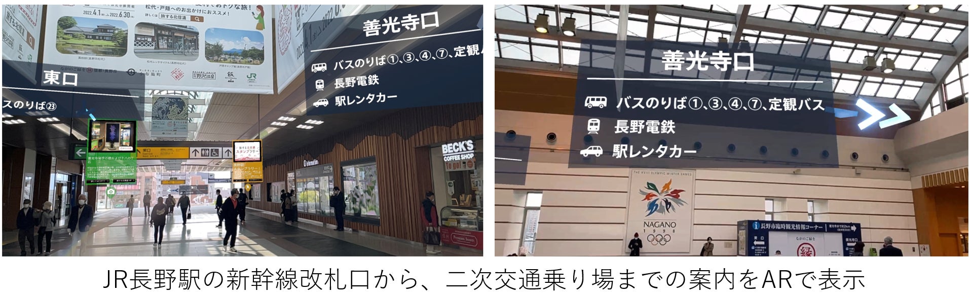「XR CHANNEL」では、これまでさまざまなコンテンツ提供(※5)を行ってきましたが、2022年4月1日より「旅する北信濃~牛(スマホ)にひかれて善光寺御開帳~」と連携し、長野駅及び善光寺周辺に観光用ARコンテンツを提供しており、2022年5月9日よりソニーのVPS技術を活用した、新たな観光用ARコンテンツをスタートしています。