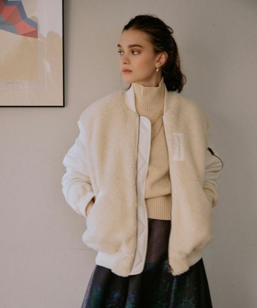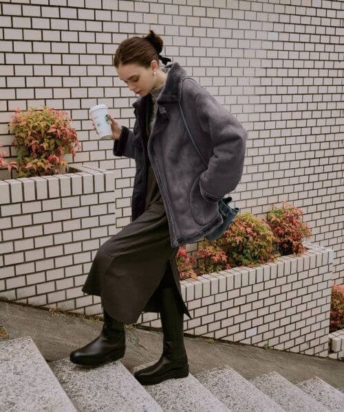 ボアのボリューム感が暖かみを生み、軽やかさも兼ね備えたデザイン。
